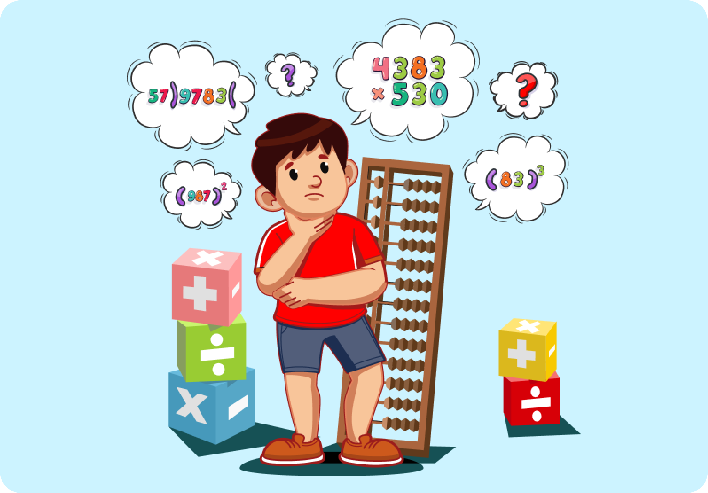 Abacus is a uniquely designed tool in which the upper part consists only one bead and followed by the lower part with four beads in a frame helping to solve the bigger calculations in seconds through mental maths . The abacus focuses on all of brain development aspects